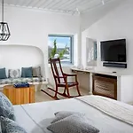 Foi uma base útil para fazer uma viagem de lua de mel e a minha estadia foi confortável. Os quartos com isolamento acústico, o café da manhã impressionante com uma grande quantidade de alimentos, uma equipe incrivelmente amigável. As vistas incríveis para o oceano. Uma localização magnífica, a uma caminhada de Míconos.
